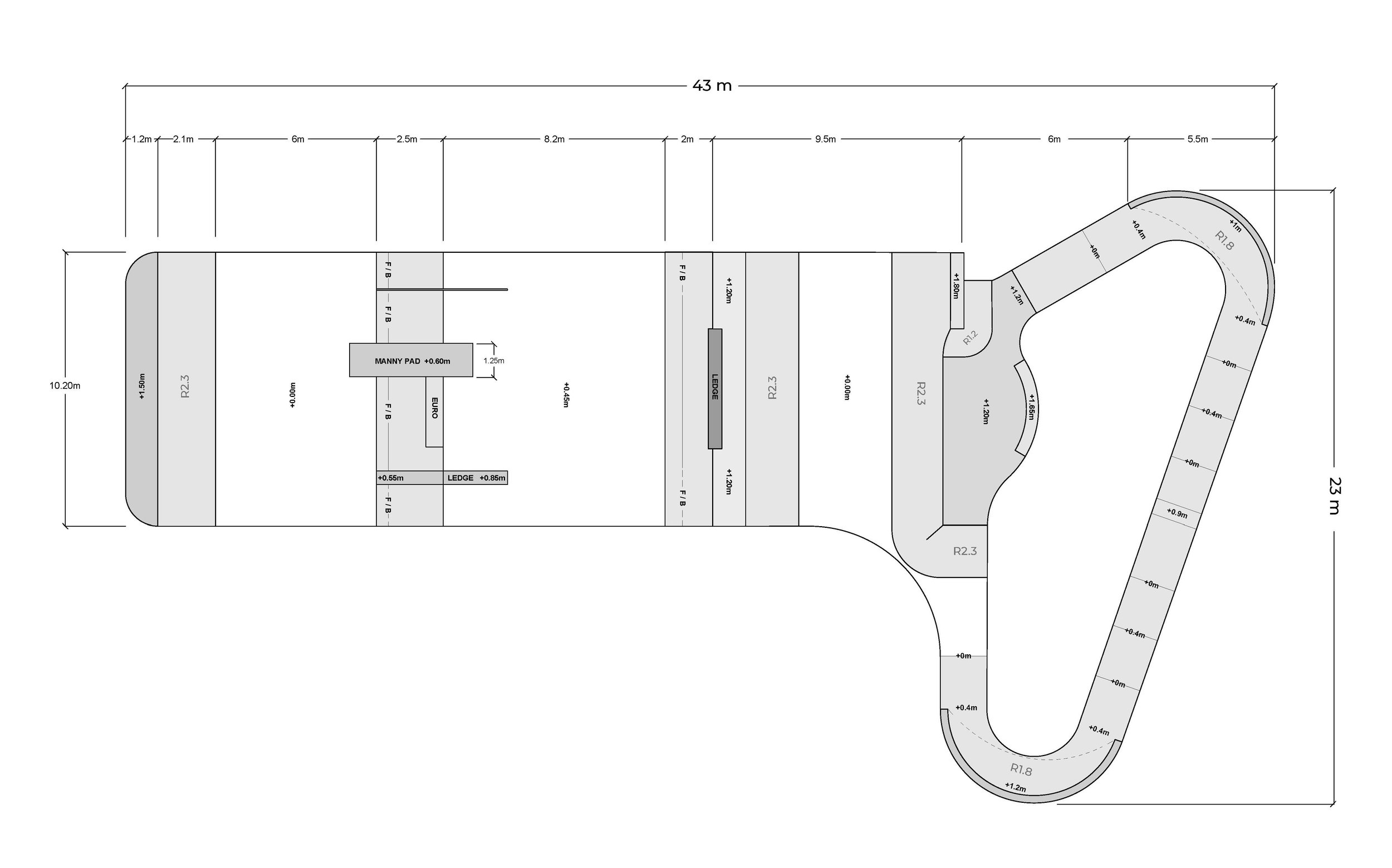 Features a Street Facility, Miniramp and Pumptrack.